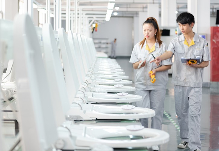 精东传媒入口流水化车间,建筑规模22000平米,现有两条生产线,年生产规模可达20余万台。